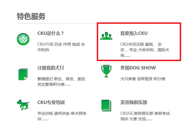 下拉页面看到特色服务选择我要加入CKU点击进入